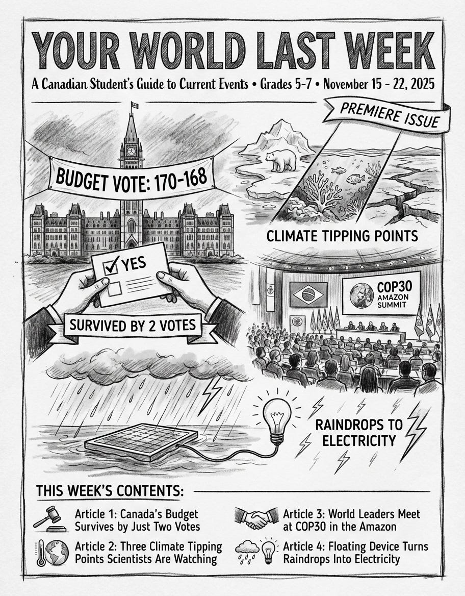So I decided to build Your World Last Week—a weekly news publication designed for Canadian students in grades 5-7.