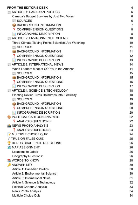 Every article was researched from credible news sources, every comprehension question was designed with educational best practices in mind, and every editorial decision—from which stories to cover to how to present them—reflects my vision of what young Canadian readers need to know about their world.”